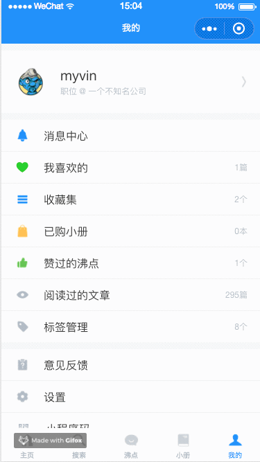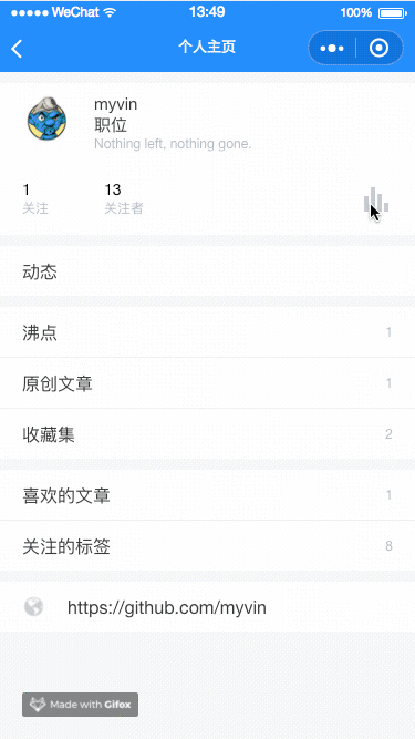 </view>原创文章页、喜欢的文章页、阅读过的文章页、赞过的沸点页、关注的标签页