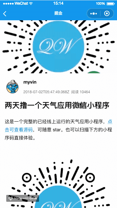 这里先上效果图,感兴趣的也可以 查看源码 。实际体验可扫描上面的小程序码。