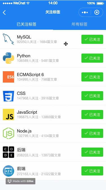 [x] 已关注标签