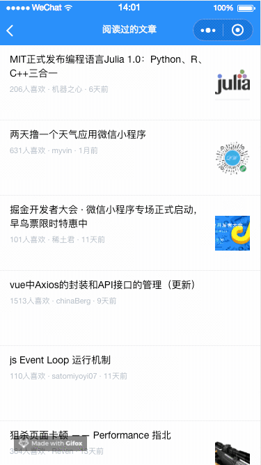 PC 开发者工具录制,会有些卡顿文章数据入口调整了,也保留了动画,请酌情忽略 gif 卡顿实现