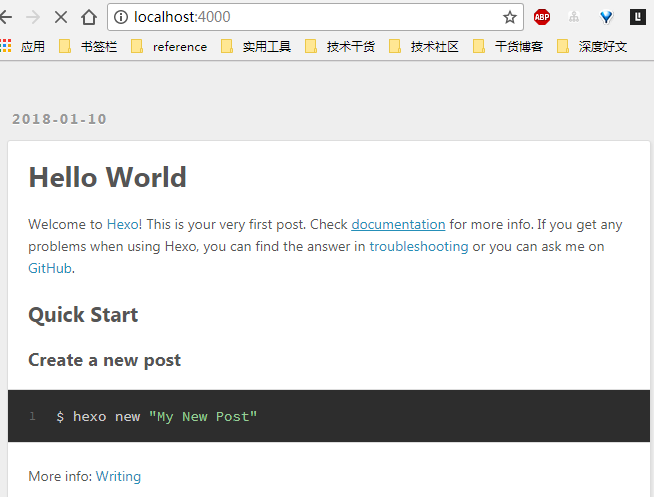 站点配置:启用分类及标签,清除缓存,生成页面,启动服务预览,无问题后发布