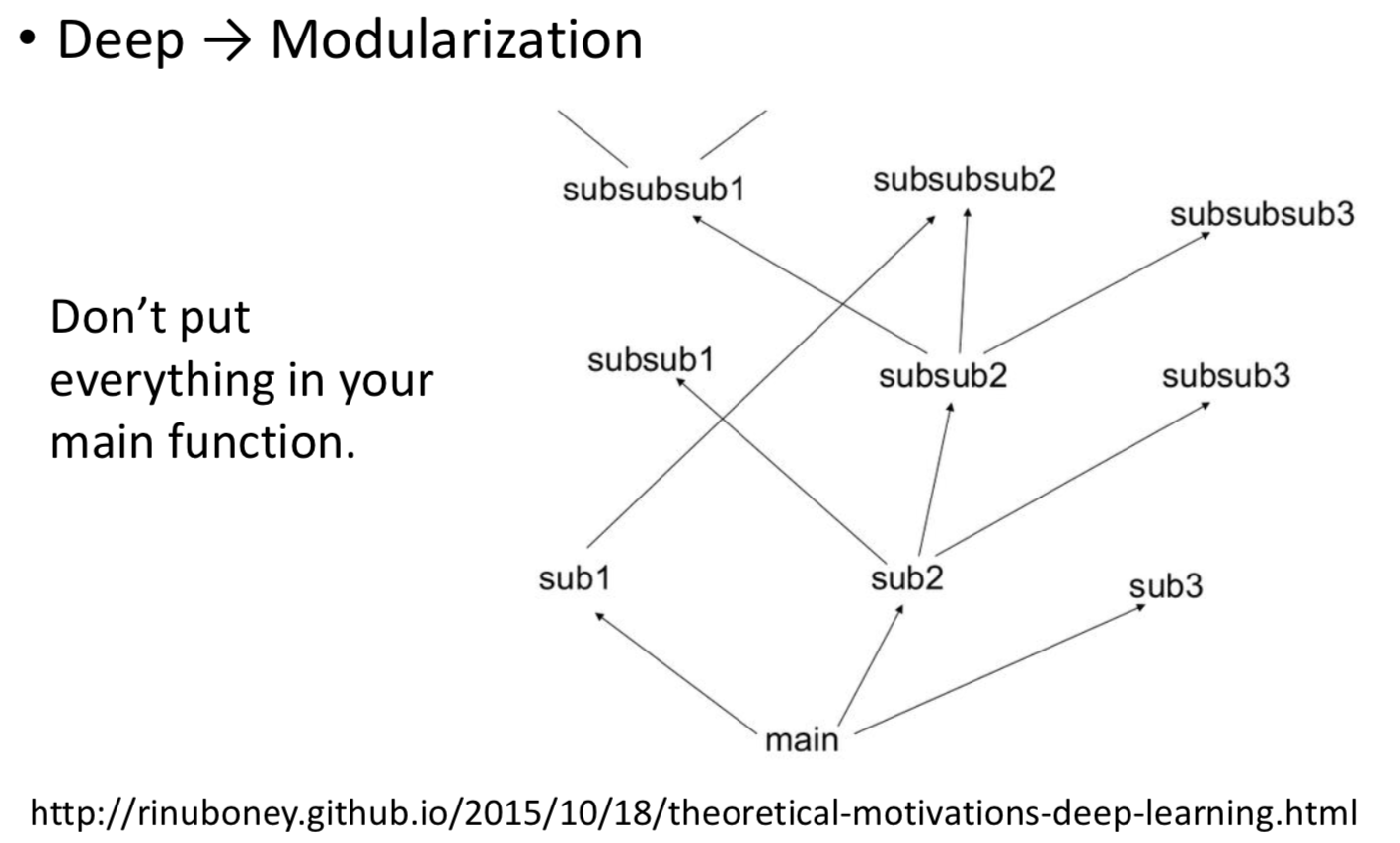 李宏毅教授在他的机器学习视频中,提出一种叫做 Modularization(模块化)的解释。