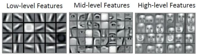 low level 中每一个特征在 high level 或多或少被使用,这样对于每一个 high level 特征,只需要训练一套 low level 特征。是的,low level 特征被共用了,相当于将提取 low level 特征单独成立了一个模块,供高层调用。对于每一个 high level 特征,不需要每次都将 low level 特征训练一遍。这就是 deep 的好处。