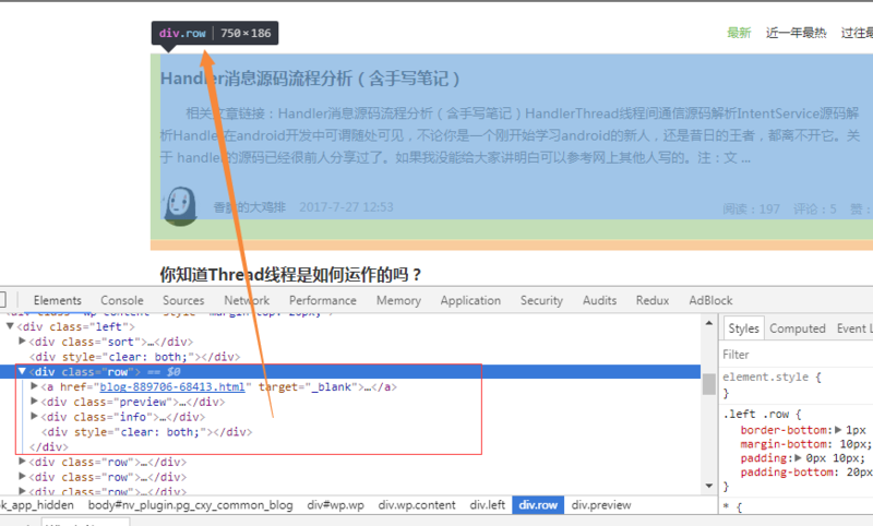同理在博客列表上也是一样的取法,可自行打开开发者模式查看就不展开浪费篇幅了。