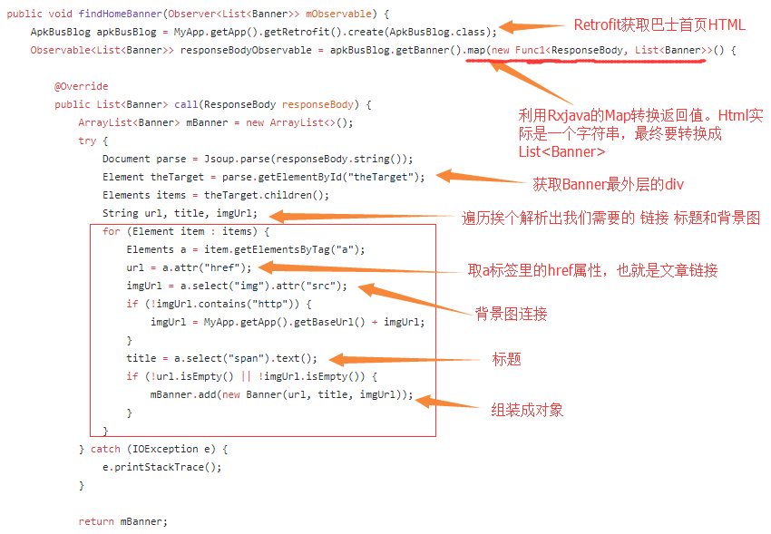 首先Banner和博客列表,我们知道他们都是网页。在前端中常见用document或者JQuery去获取页面节点上的属性或信息。那么其实Java也有轮子可以用来直接解析Html上的节点数据。大型的叫爬虫。当然我们这里用不到爬虫这么个东西。有更轻巧的jsoup框架。