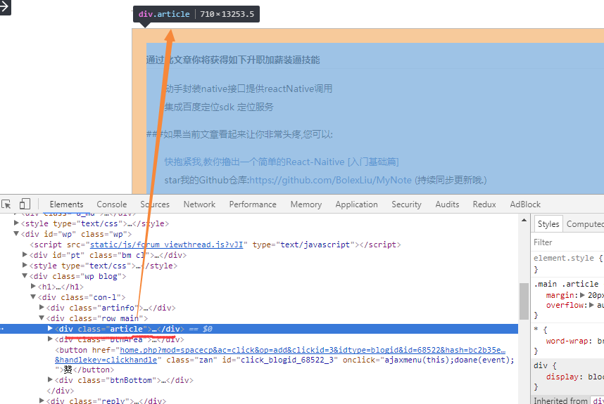 1.打开详情页,开启控制台。看看文章主体内容的div是赋予的什么id或者class。