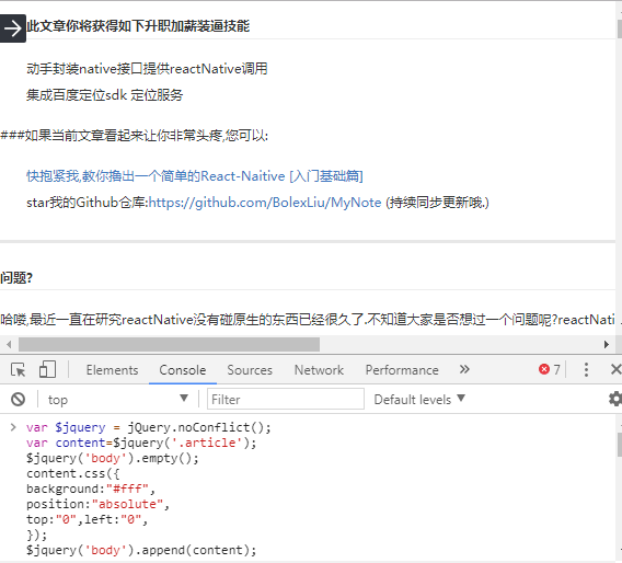 可以发现,这里没有id,只有class="article",不过已经够用了。 在控制台上调用JQuery获取内容。