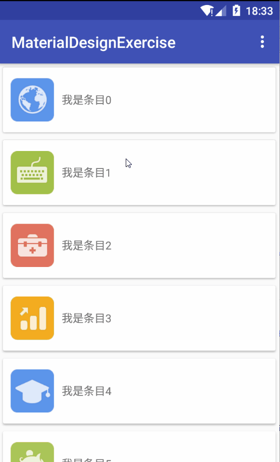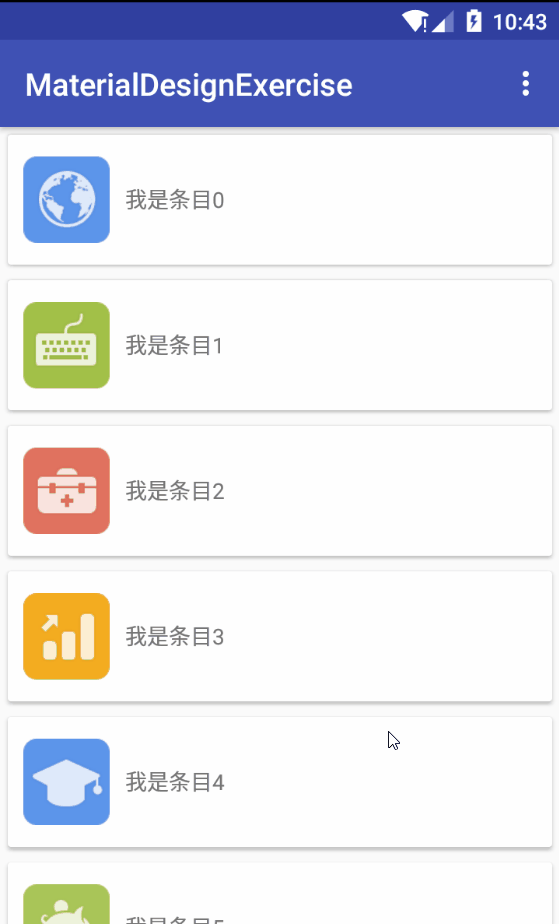 定义MyListAdapter继承RecyclerView.Adapter<VH extends ViewHolder>,泛型中需要传入RecyclerView.ViewHolder的子类,我们定义了MyHolder继承RecyclerView.ViewHolder,在ViewHolder中,构造函数需要传入View对象,即子条目的根View,接着我们做了子条目view各个控件的初始化操作和定义了setDataAndRefreshUI()方法,需要传入对应的bean类,并为相应的控件设置数据。