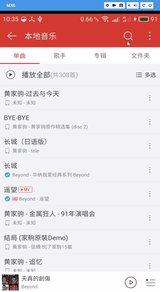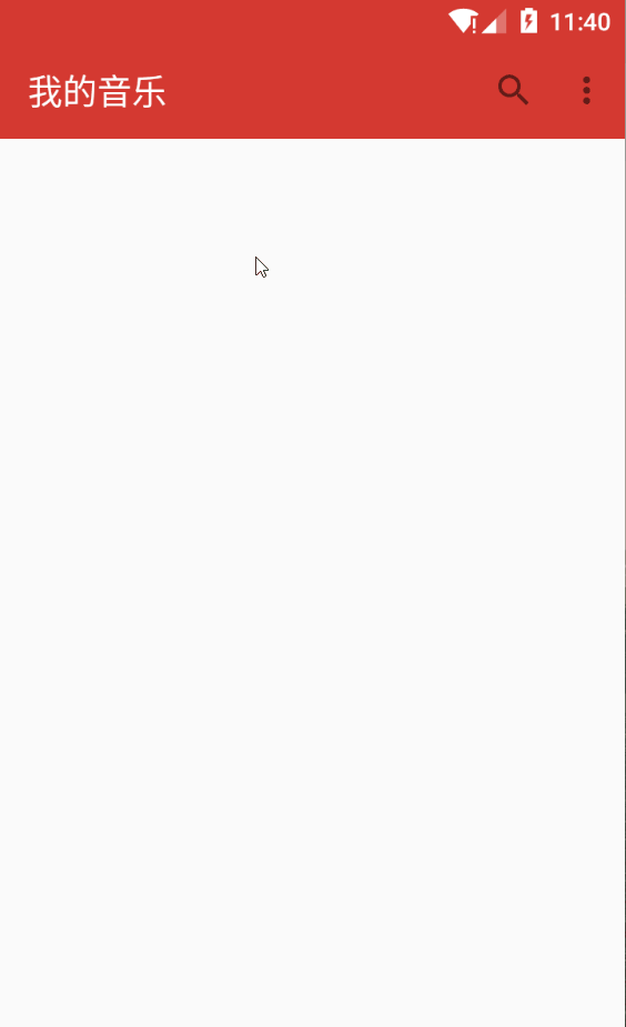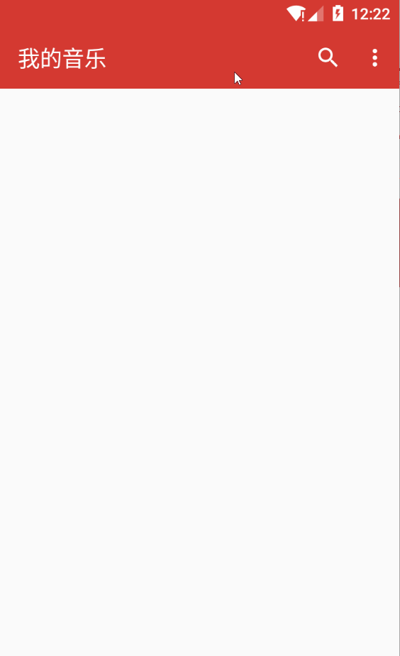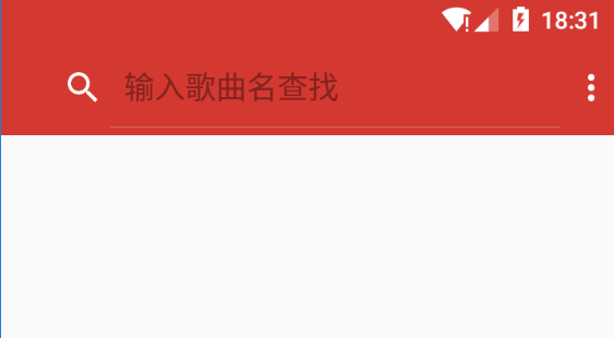 });设置navigationIcon的点击事件时,我们判断当前SearchView是否处于显示状态,通过调用SearchAutoComplete的isShown()方法,如果处于显示状态,则清除输入框中的内容,接着通过反射调用SearchView的onCloseClicked()方法,收起SearchView;如果SearchView处于收起状态,点击则是关闭当前Activity.现在是不是觉得很接近网易云音乐的搜索本地音乐的样子了。