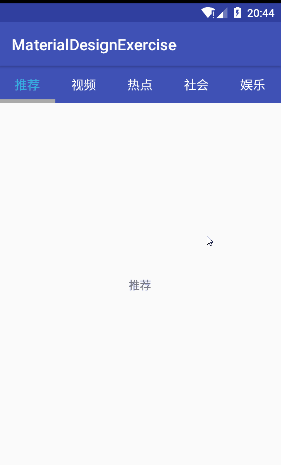public class TabLayoutActivity extends AppCompatActivity { private String[] titles = new String[]{ "体育", "社会", "新闻"