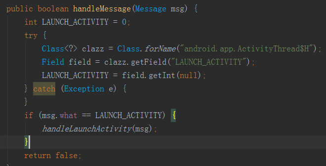 hook ActivityThread 中的 handle 在这里我们需要替换我们未被注册的Activity Intent
