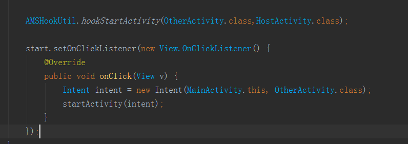 封装以后我们ASMHook将变得非常简单,简单到一行代码就可以实现不注册的情况下启动Activity。