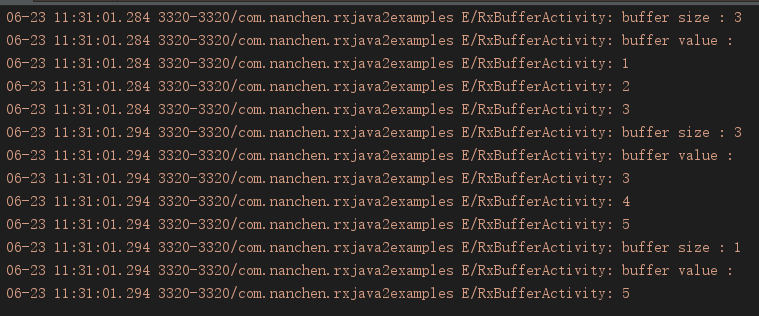 mRxOperatorsText.append("buffer size : " + integers.size() + "\n");
