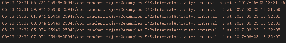 Log.e(TAG, "interval start : " + TimeUtil.getNowStrTime() + "\n");