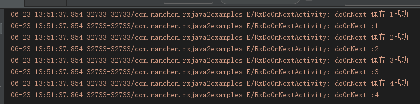 Log.e(TAG, "doOnNext 保存 " + integer + "成功" + "\n");