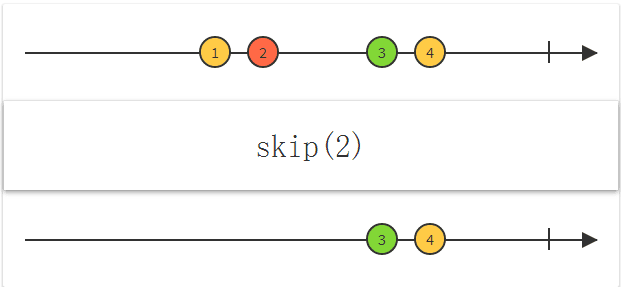 skip 很有意思,其实作用就和字面意思一样,接受一个 long 型参数 count ,代表跳过 count 个数目开始接收。