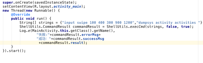 }没有root权限的情况下在屏幕上操作,实测可被执行的命令只有swipe和部分keyevent可以生效,其余的可以通过adb的方式调用成功。但是一但在应用内通过shell是不可以的。这确保了android手机的安全。