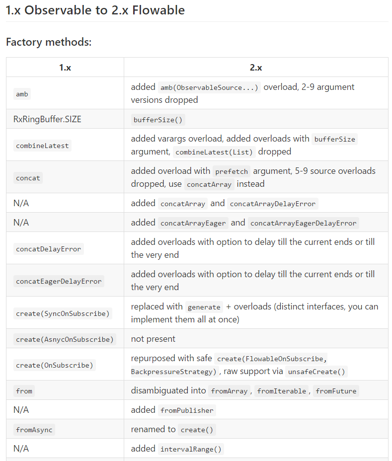 在 RxJava 1.x 中关于介绍 backpressure 部分有一个小小的遗憾,那就是没有用一个单独的类,而是使用 Observable 。而在 2.x 中 Observable 不支持背压了,将用一个全新的 Flowable 来支持背压。