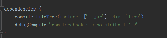 debugCompile 'com.facebook.stetho:stetho:1.4.2'}在主工程的build.gradle中,增加如下代码: