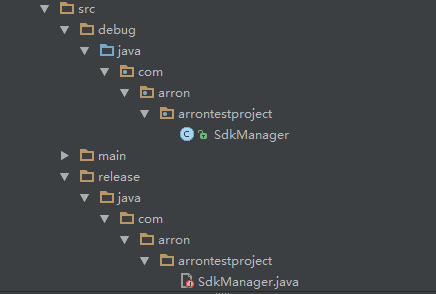 这里我们在src目录下建立debug目录和release目录,并在这两个目录下面建立一个SdkManager类。