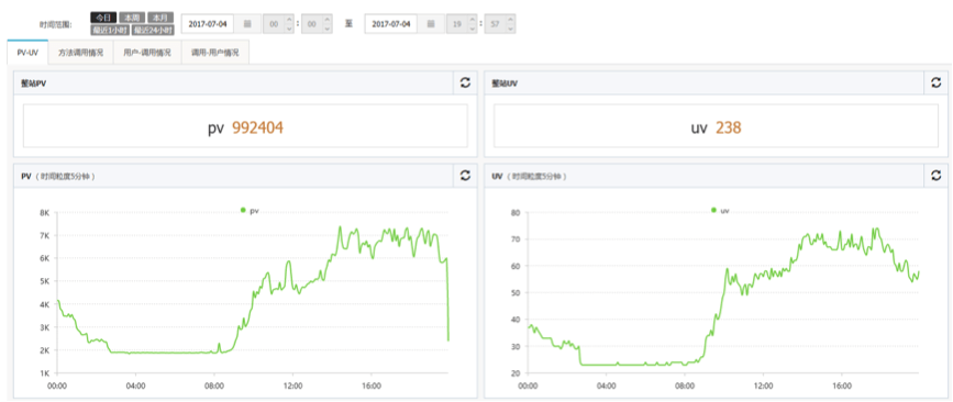 集成各类 UV, PV,响应时间等统计的最终交互式大盘效果图如下: