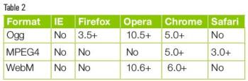 目前,video 元素支持三种视频格式,如表 2 所示。