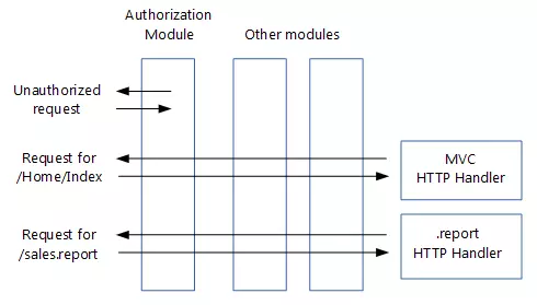 传统的ASP.NET的处理管道是基于事件模型的,处理管道有多个IHttpModule和一个IHttpHandler组成。请求处理管道中各个模块被调用的顺序取决于两方面: