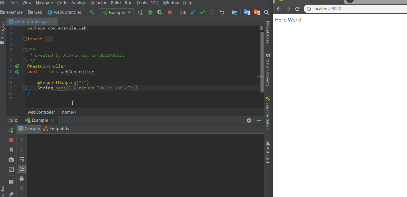 不同于 Spring 中的单元测试 —— 采用 @RunWith(SpringJUnit4ClassRunner.class) 和 @ContextConfiguration(locations = "classpath:applicationContext.xml"),SpringBoot 中使用 @RunWith(SpringRunner.class) 和 @SpringBootTest(classes = Example.class) :