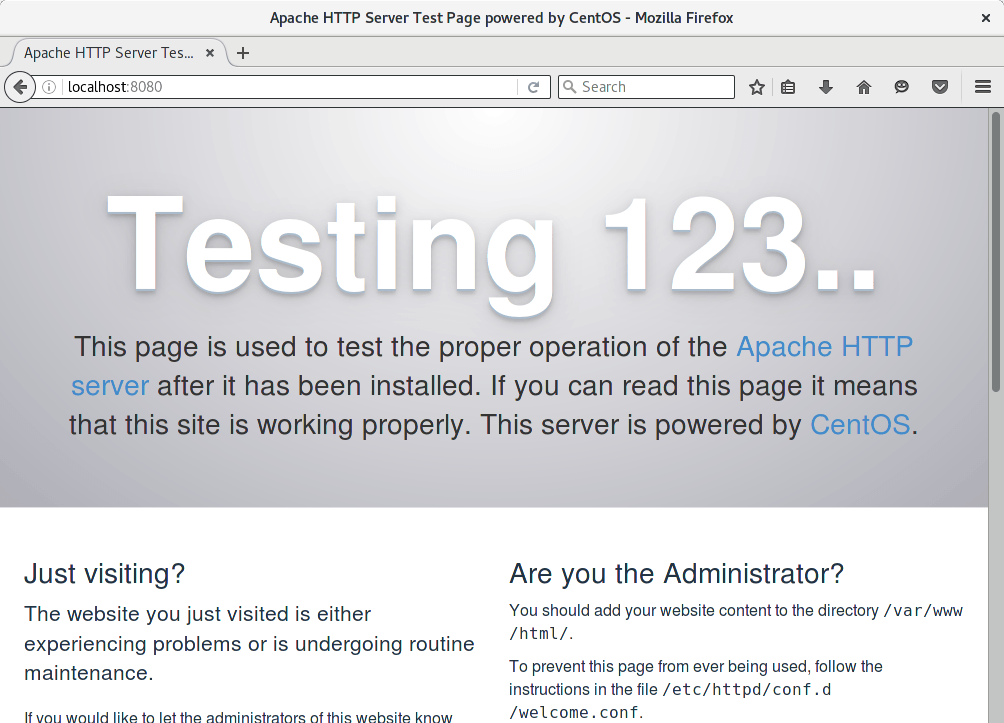 这个输出显示镜像实例已经被配置好了,现在检查服务是否可用,在宿主机上打开浏览器,输入 http://localhost:8080,记住本地主机的 8080 端口是 Vagrant 实例映射过来的 80 端口。你应该可以看到如下的 Apache 的欢迎界面。
