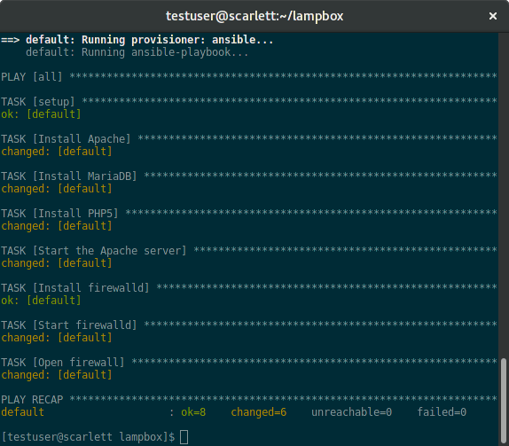 当 playbook 运行时,它会安装最新的 Apache Web 服务(http),MariaDB 和 PHP。当安装完毕并启动防火墙 firewalld,给 Apache 打开一个端口。你可以通过编写 playbook 来完成这些。现在可以配置它了。