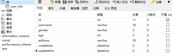 1:使用逆向工程第一步必须有一个数据库表:如图