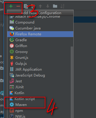 4.第三部:选择菜单栏Run ->edit Cofiguerations--->左上角的+号---》选择maven:如图