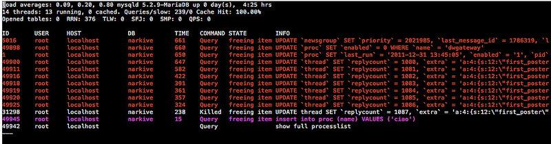 mtop:一个面向MySQL/MariaDB服务器的命令行监控器,它可以将成本最大的查询和当前数据库服务器负载以可视化的方式显示出来。它在您优化MySQL服务器性能、调谐服务器参数时很有用。