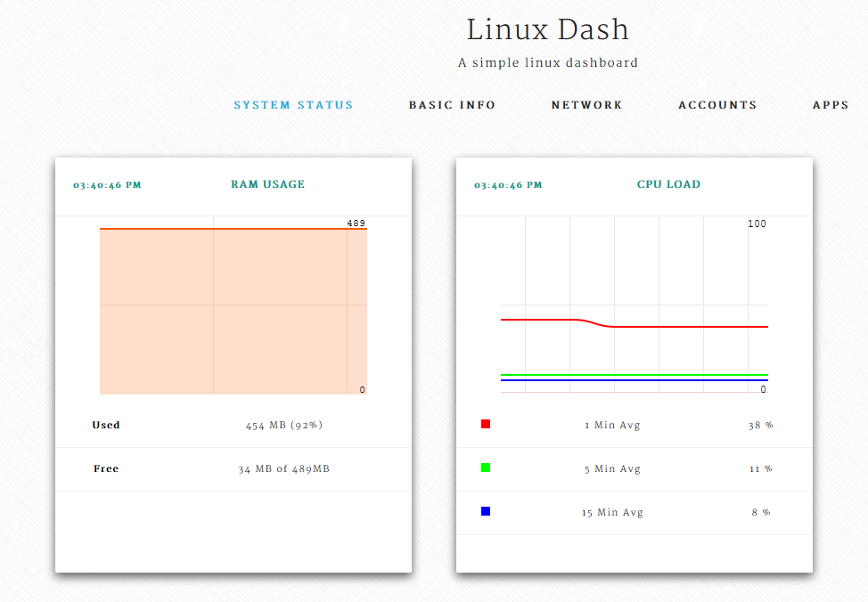 现在您便可以访问http://serverip/linux-dash-master/了。您应该会看到类似下面的输出: