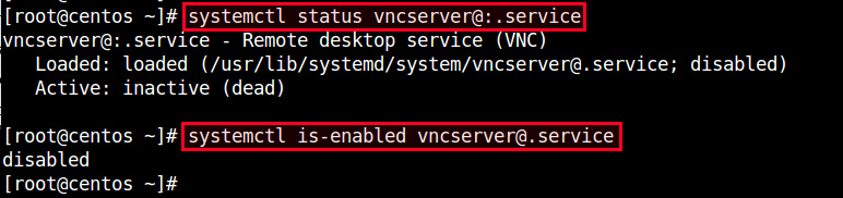 # systemctl status vncserver@:.service# systemctl is-enabled [email protected]# cp /lib/systemd/system/[email protected] /etc/systemd/system/vncserver@:1.service# vi /etc/systemd/system/vncserver@:1.service