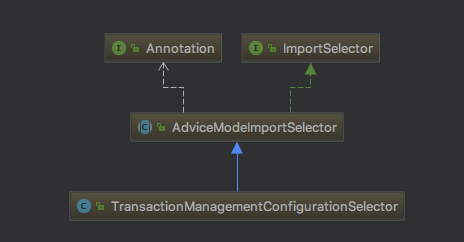 如上图所示,TransactionManagementConfigurationSelector继承自AdviceModeImportSelector实现了ImportSelector接口。