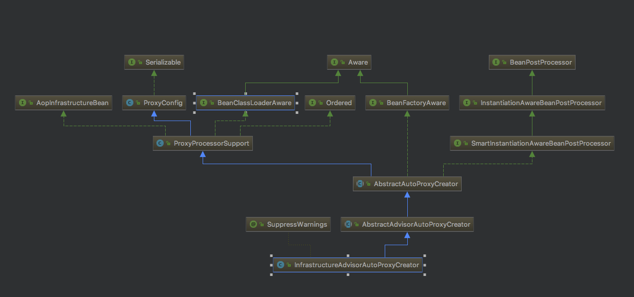 InfrastructureAdvisorAutoProxyCreator类图如下: