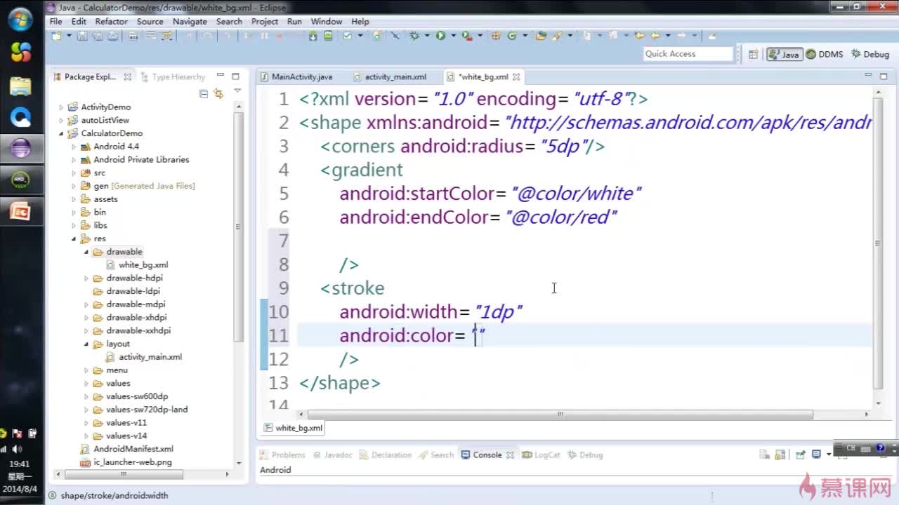 需要在res/values文件夾下新建一個color.xml文件:在color.xml里是否定義了white和red
